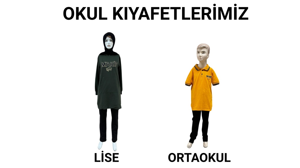 Ortaokul kıyafetimiz ise sarı renkte olup siyah pantolon-etek ve siyah başörtüsü (başörtüsü kullanan öğrenciler için) şeklindedir.